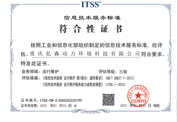 不僅如此,除專利外,經(jīng)ITSS協(xié)會審核確認(rèn),億森動力順利取得ITSS三級認(rèn)證證書,此項認(rèn)證的成功,標(biāo)志著億森動力在信息技術(shù)服務(wù)標(biāo)準(zhǔn)和能力上又邁出了堅實的一步。